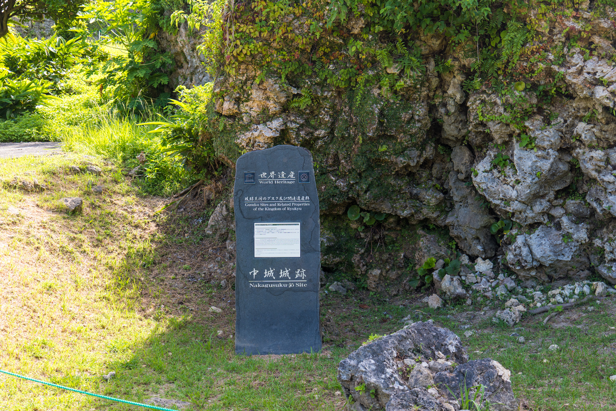 나카구스쿠 성터는 2000년 12월에 ‘류큐왕국 구스쿠 및 관련 유적군’의 하나로 유네스코 세계문화유산에 등재되었습니다. 이는 나카구스쿠 성터가 군사적·정치적 기능뿐 아니라 당시의 문화, 건축기술, 국제교류의 흔적을 고스란히 간직하고 있음을 의미합니다.
