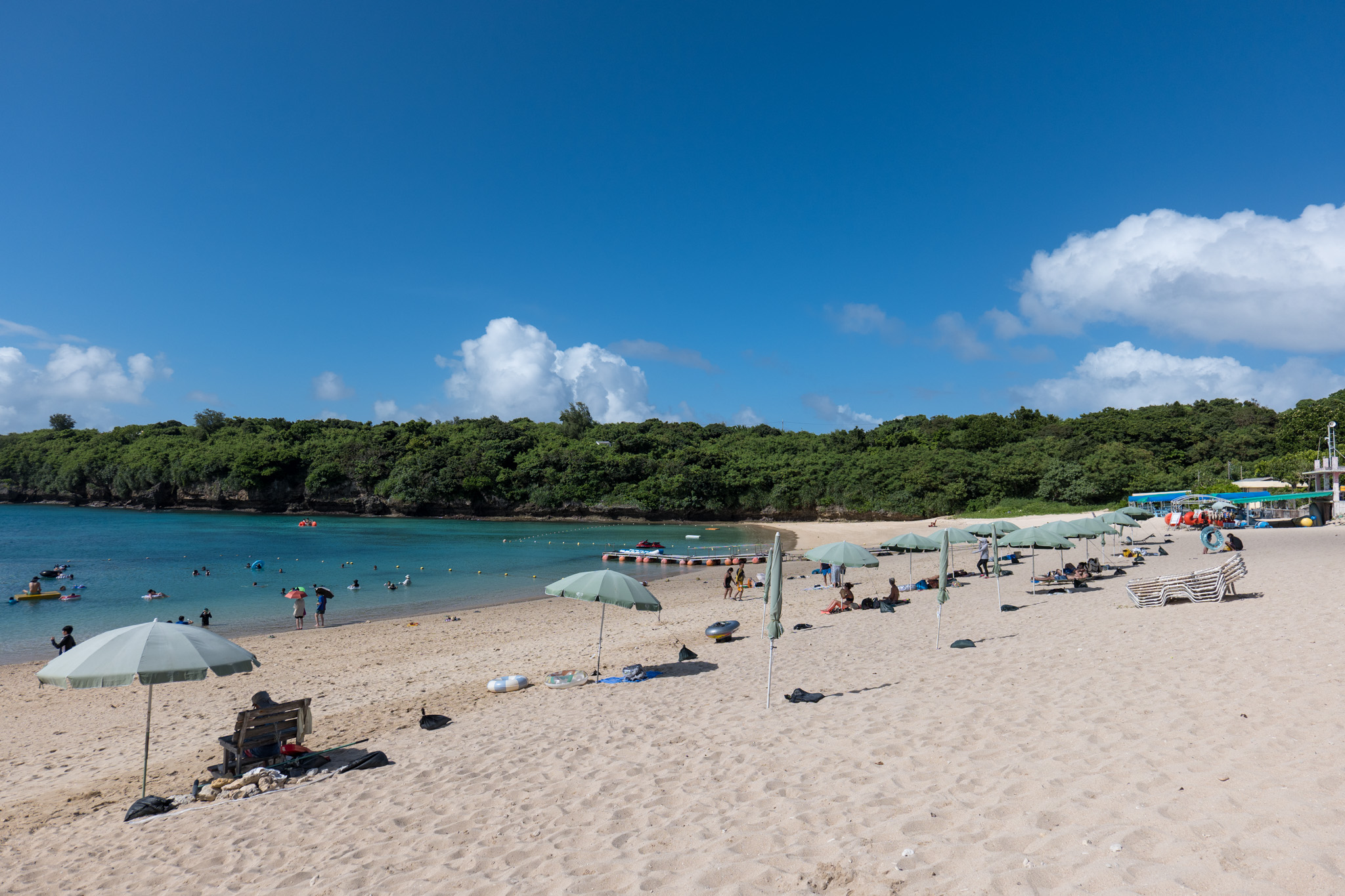 맑고 투명한 바다와 고운 백사장으로 유명한 비치. 해중도로 끝자락 이케이섬 북쪽에 자리잡고 있습니다. - 카후반타와 아쿠나하마