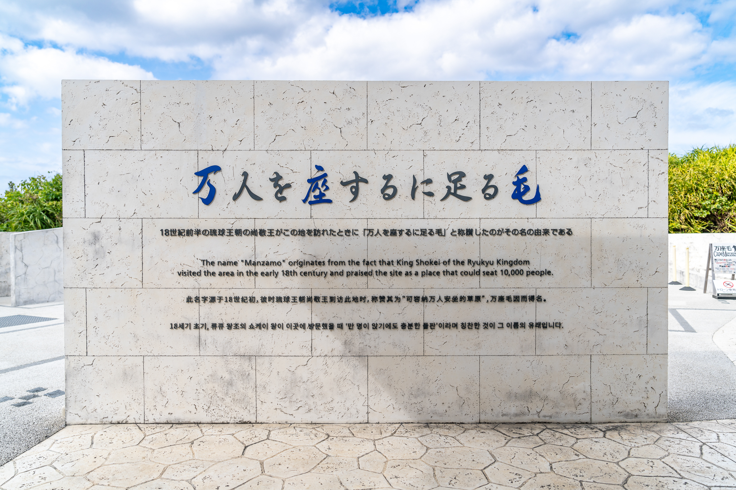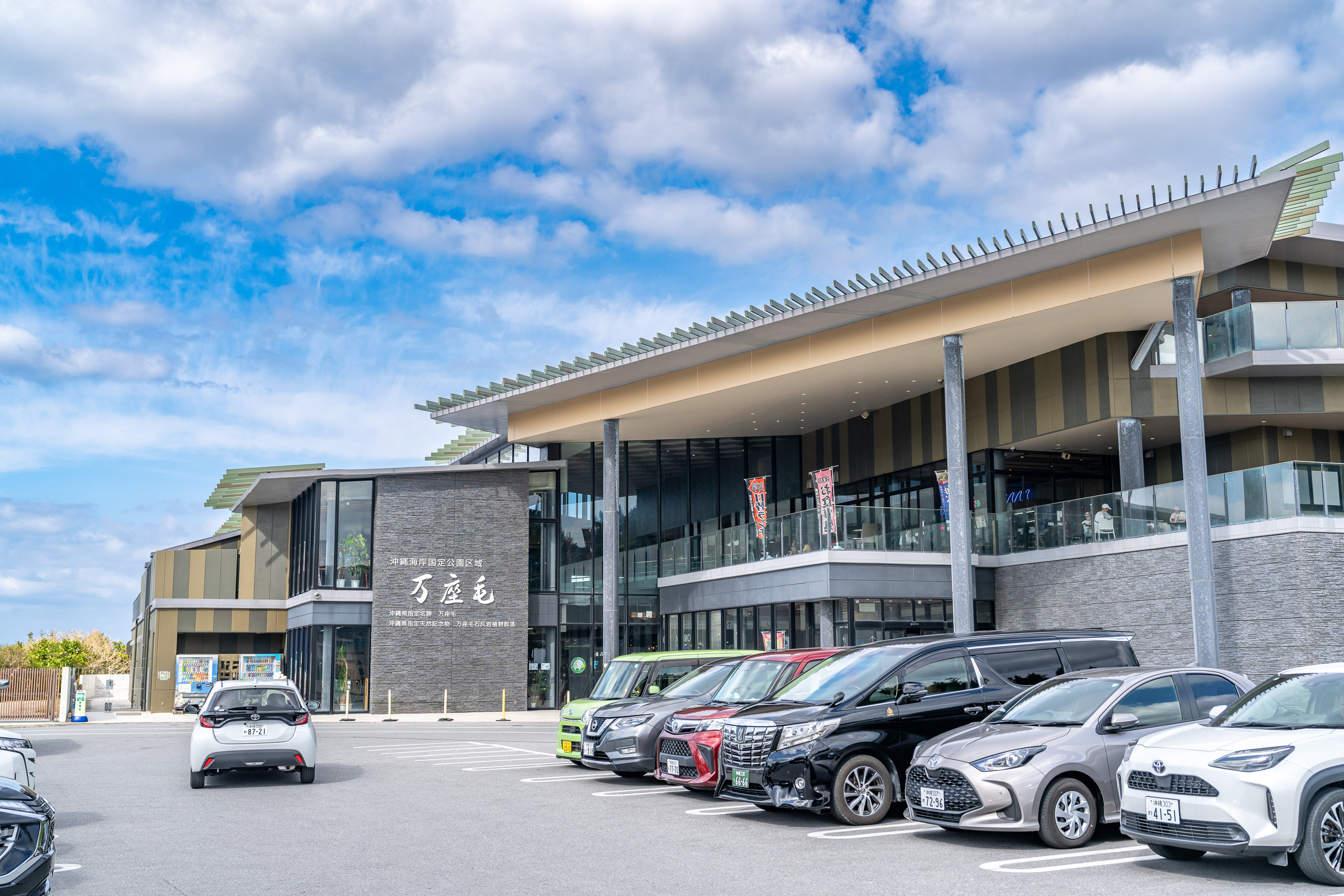 가장 처음 방문하는 장소는 만좌모입니다. 고속도로 휴게소 느낌입니다만 주변에 고속도로는 없어요. 여기는 입장료가 있고 100엔입니다. 자판기에서 구입할 수 있는데 한글이 지원되고 현금과 카드 모두 사용할 수 있습니다. 입장해서 가볍게 산책을 돌아보세요. 시원한 바다와 넓은 뜰을 보시고 아래 사진의 코끼리 모양 바위를 배경으로 기념사진도 하나 남겨보시길 권합니다!