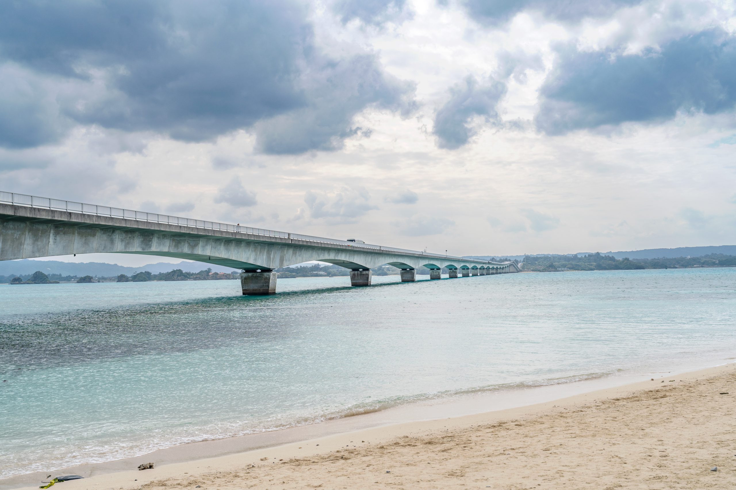 코우리 대교는 2킬로 미터 정도로 매우 긴 다리입니다. 이곳을 걸어보는 것도 추천하지만, 버스 투어에서는 시간에 제약이 있어서 이 멋진 다리를 건너 보기에는 약간 제한이 따르죠. 코우리 대교 다리를 직접 걸어보고 싶으신 분들은 렌트를 하시는 것도 방법입니다. 렌트는 이 곳 고고렌트카에서 할 수 있습니다. 하지만 이건 오늘 주제에서 벗어나므로 논외로 하죠. 잠시나마 버스로 에메랄드 빛 바다를 구경해보시길 바랍니다.