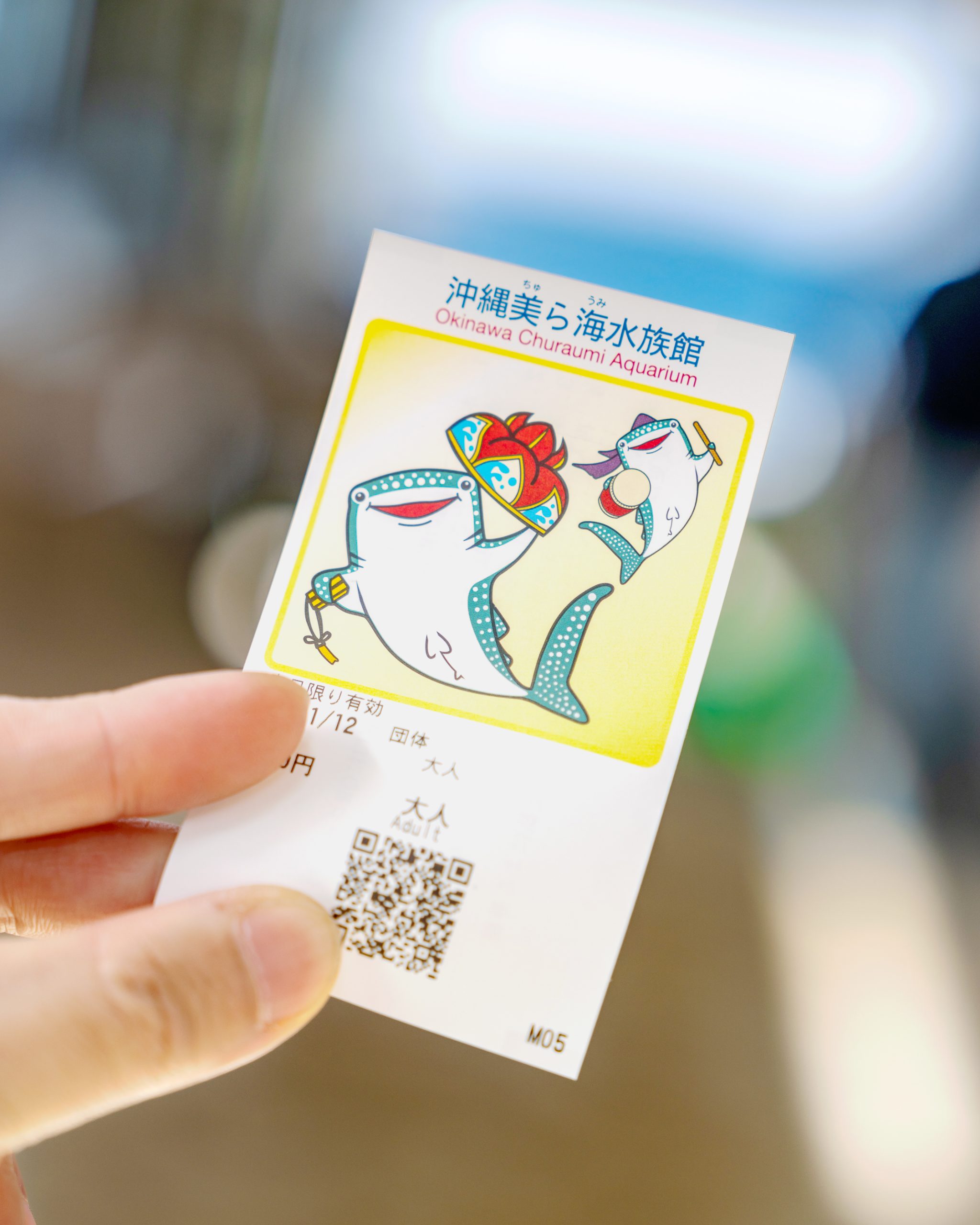 츄라우미 수족관 티켓은 입구에서 안내원이 나눠줍니다. 입장권 아래에 있는 바코드를 수족관에 들어가셔서 개찰구에 찍고 들어가면 됩니다. 이렇게 버스투어로 방문하면 거의 기다리지 않고 입장할 수 있어요!