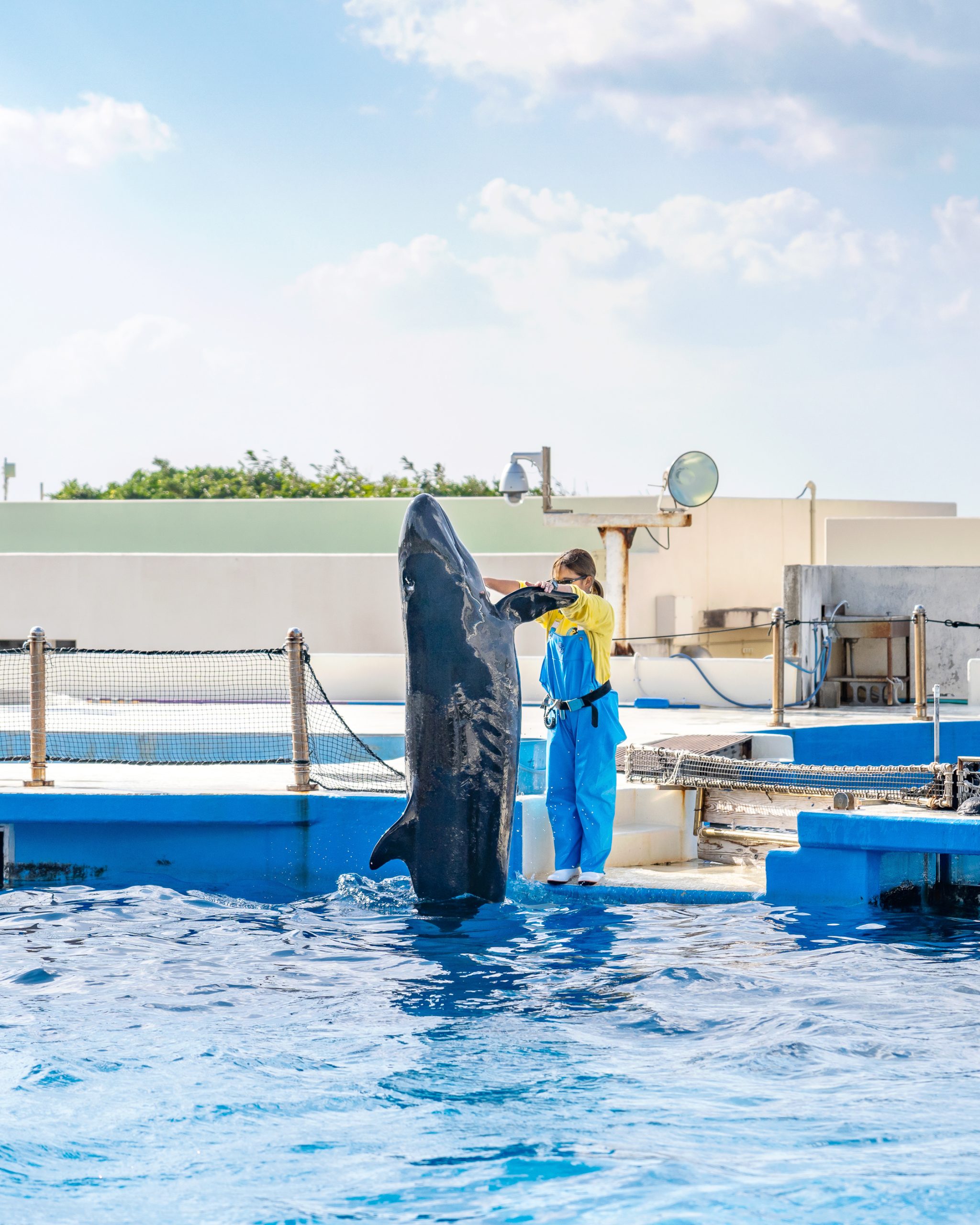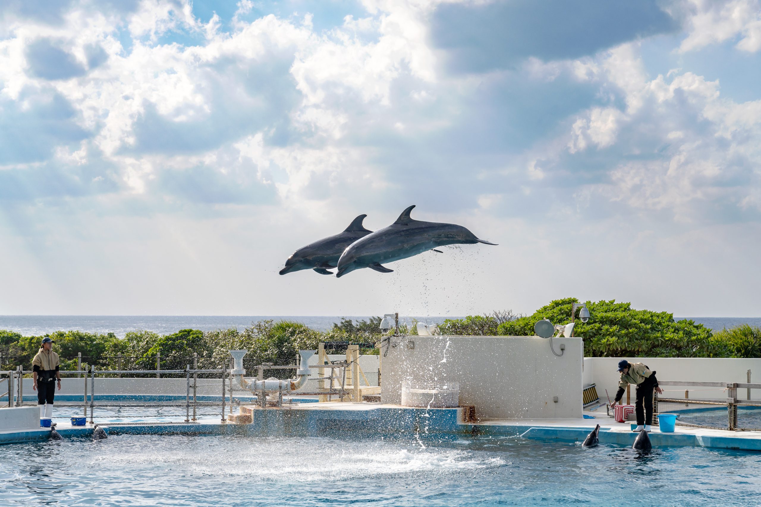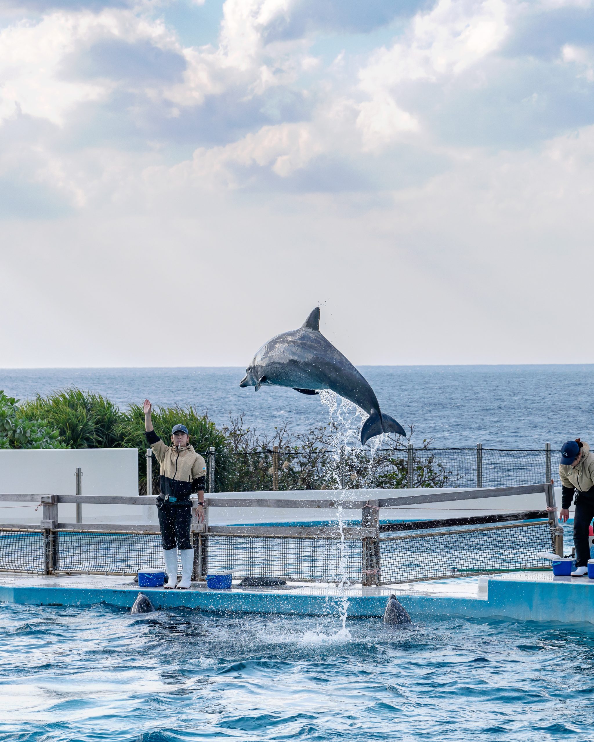 그럼 돌고래 라군을 지나서 오키쨩 극장에 도달할 수 있는데, 이곳에서 오후 3시 멋진 돌고래 쇼를 볼 수 있어요!