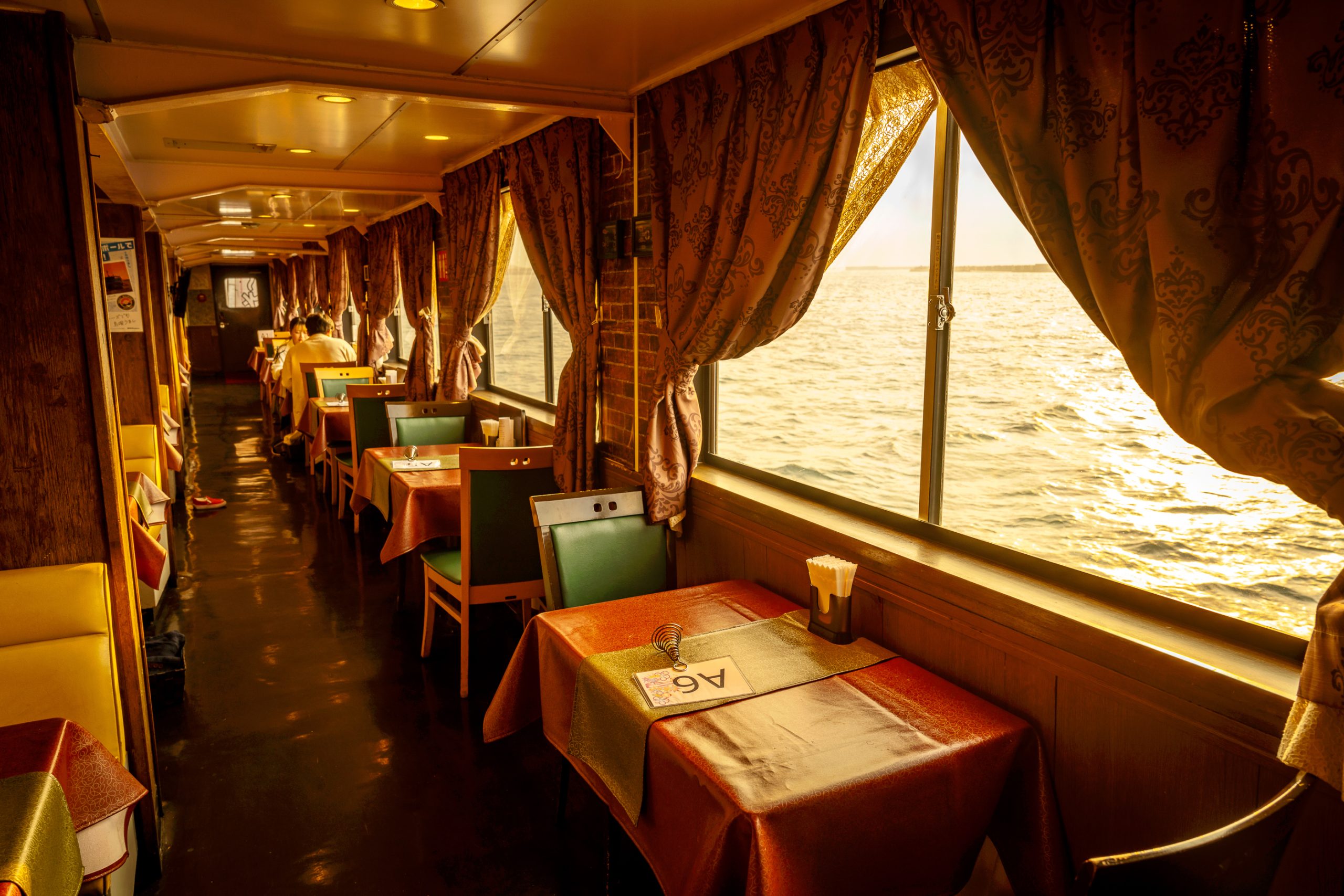 선박에 탑승하면 승무원들의 안내를 받아 내부로 입장하면 됩니다. 그리고 리셉션에서 받았던 승선카드를 제출하면 예약한 좌석으로 안내해줍니다.
