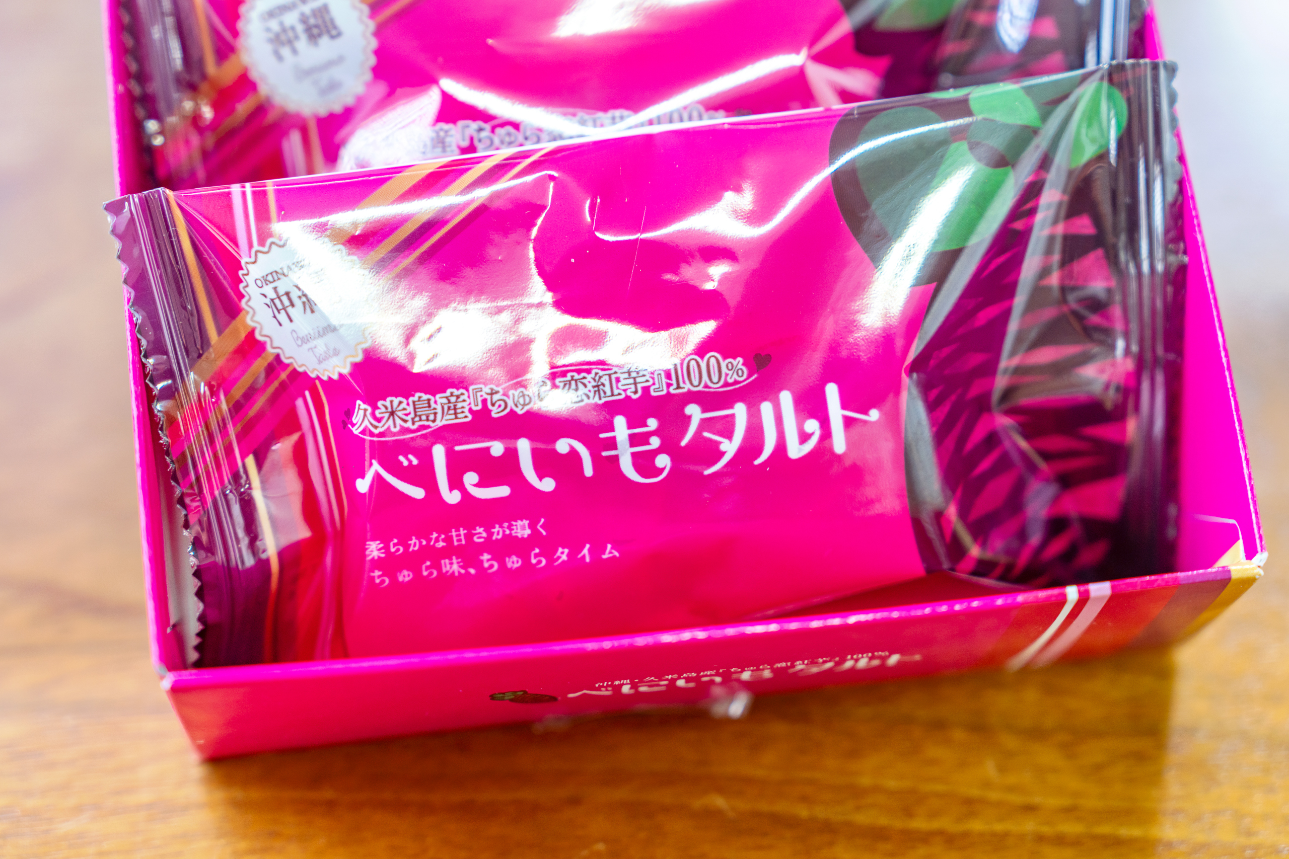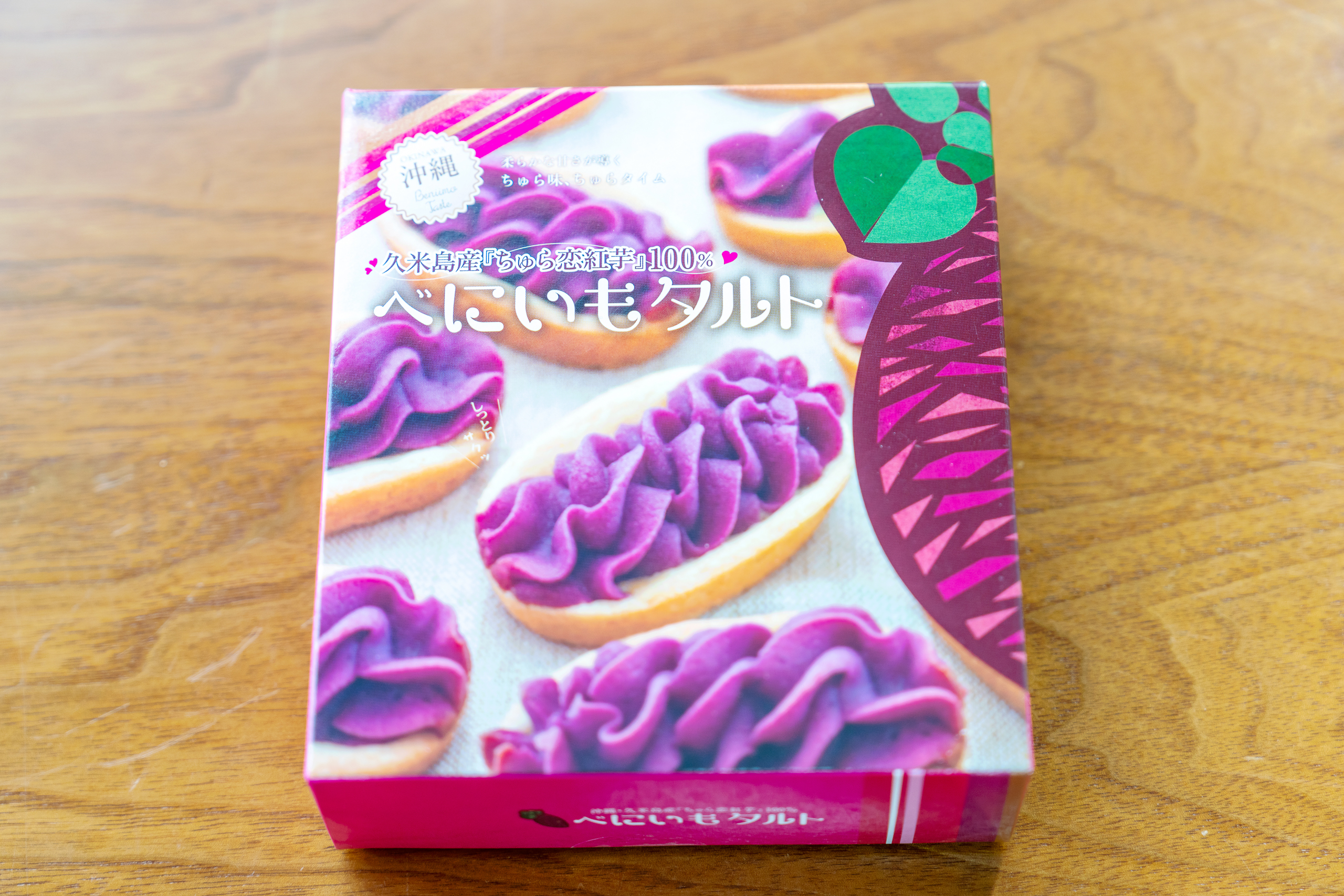 일반 고구마보다 당도가 높고 식감이 촉촉하여 다양한 식재료로 활용이 가능하며, 그 특성을 활용해 과자로 만들어서 기념품으로 판매되고 있습니다. 오키나와만의 특별한 기념품이나 선물을 생각하신다면 오키나와 베니이모 타르트를 구입해보시는건 어떠신가요?