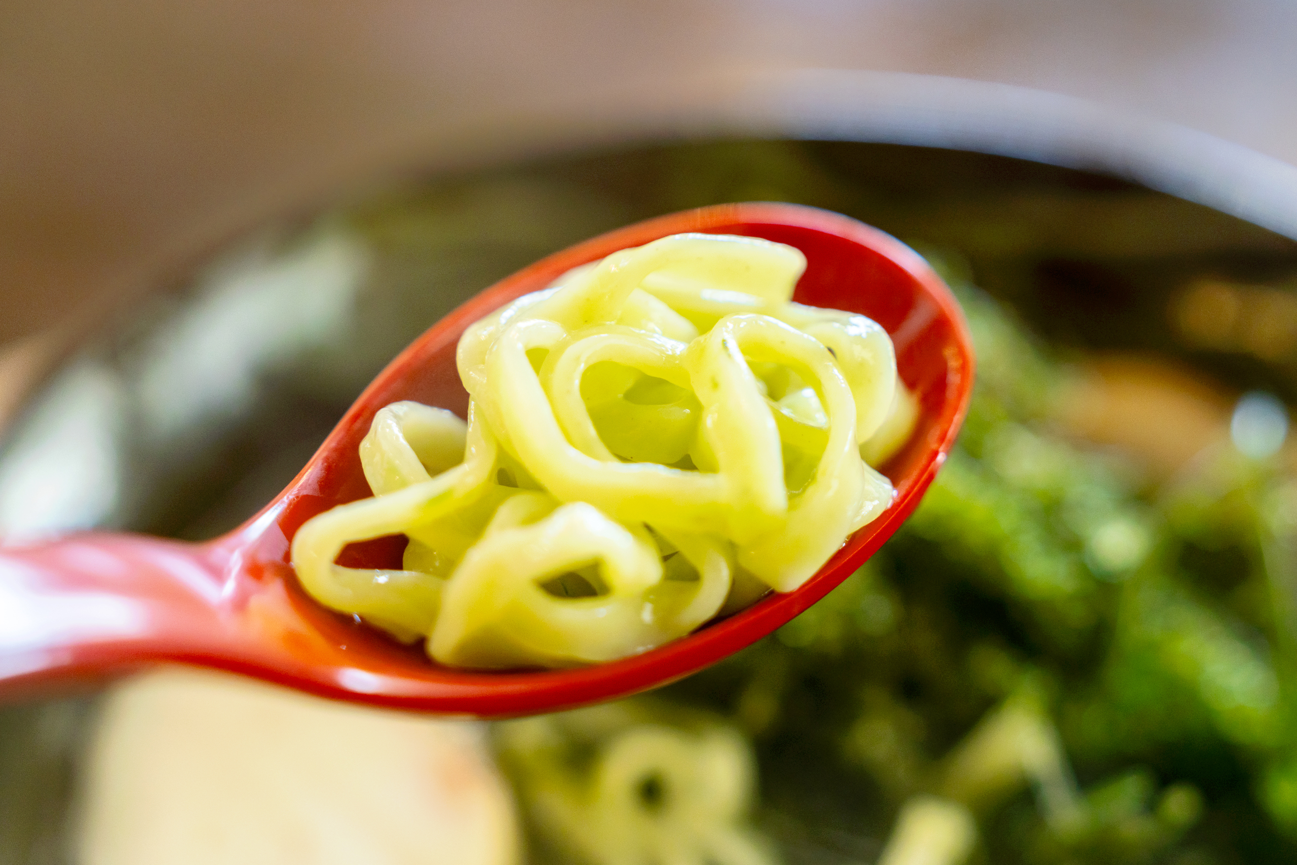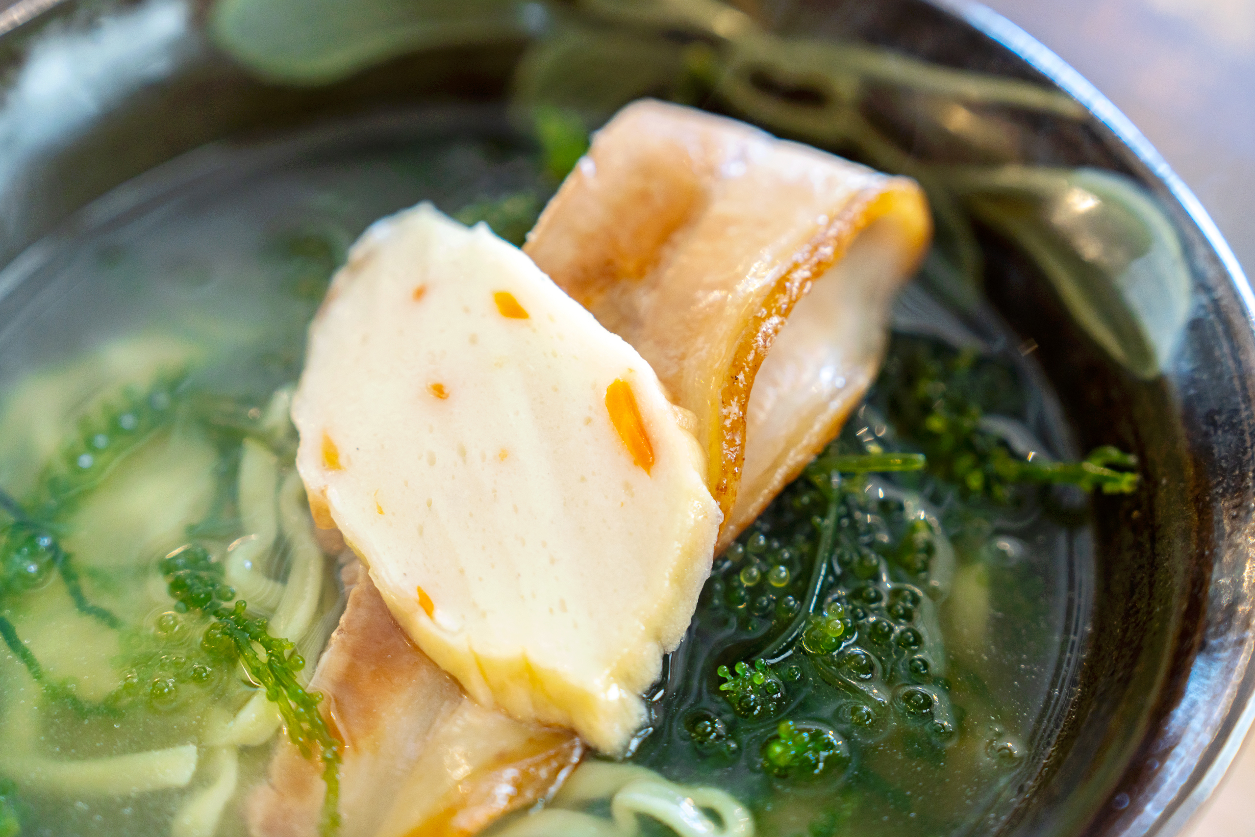 면은 타이가 제면소라고 오키니와에서 유명한 곳에서 만든 것을 사용합니다. 면 색이 살짝 녹색 빛을 띄고, 오키나와 소바에 기본적으로 들어가는 고명도 함께합니다. 면은 푹 익힌 스타일로, 국제거리의 덜익은 면 스타일과는 조금 다릅니다.