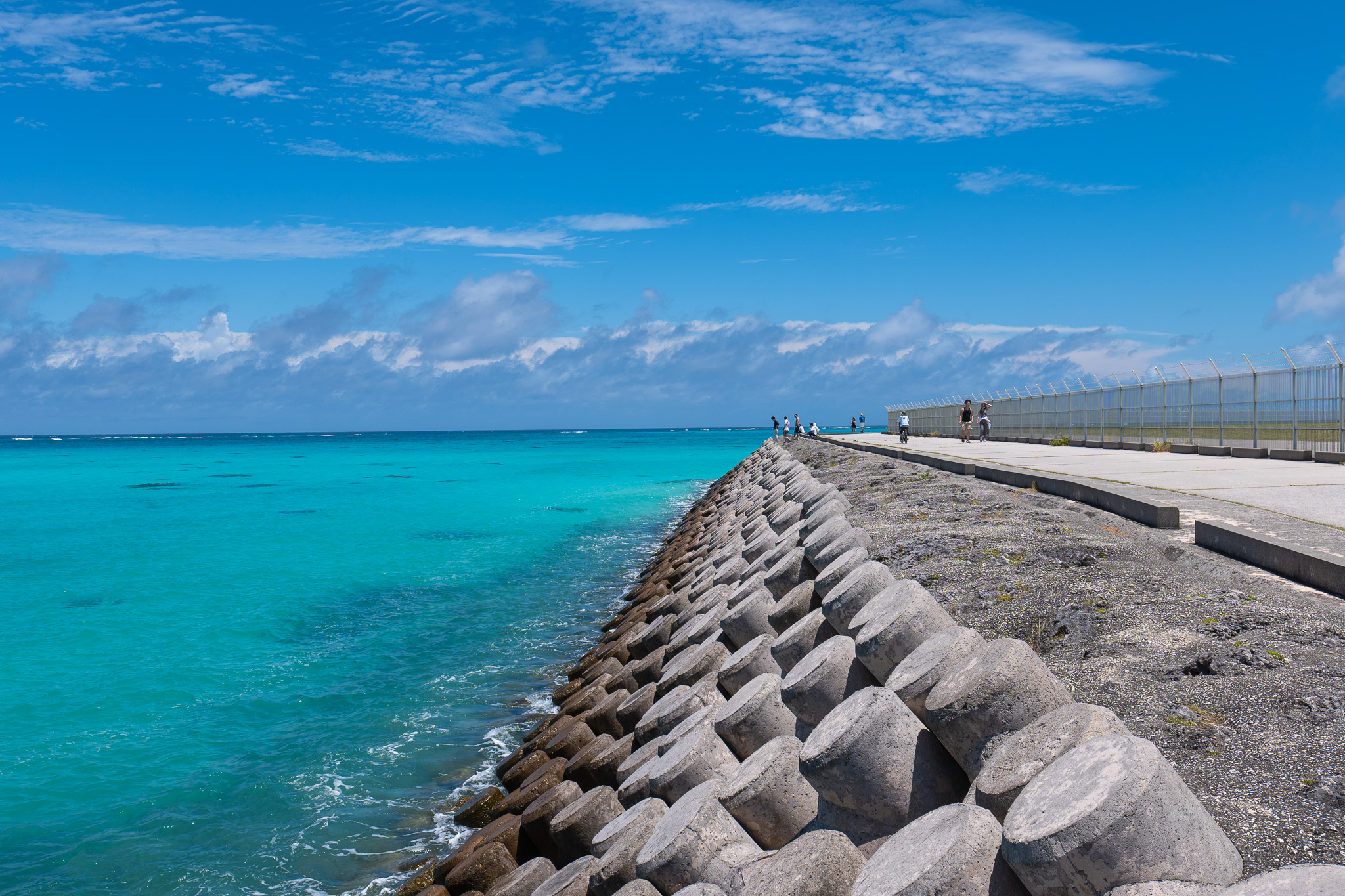 17END는 투명한 바다, 환상의 비치, 비행기 이착륙 등 다양한 매력을 가지고 있어요. 주차장에서 방파제를 따라 걸으며 미야코 블루를 감상할 수 있어요. 걷다보면 바닷색깔이 달라지는데요, 17END에 이르면 미야코 블루의 진수가 눈 앞에서 펼쳐집니다.