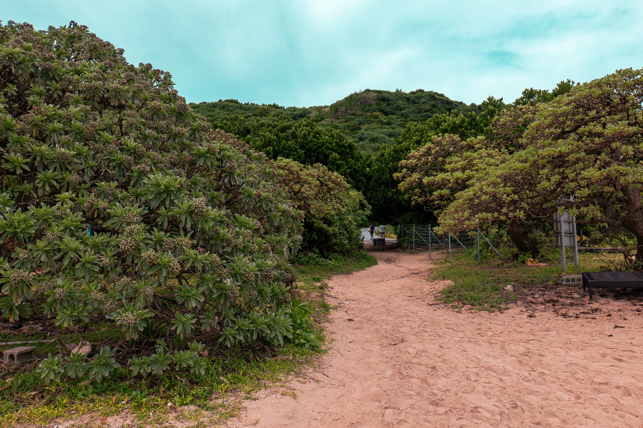 렌트카로 83번 국도를 달리다 보면 코발트 블루 바다가 시야에 들어옵니다. 그 풍경에 눈을 뺏긴 사이, 비치로 향하는 내리막길이 나와요. 조금만 더 내려가면 무료 주차장이 있어요. 성수기에는 인근 유료 주차장도 이용할 수 있어요.