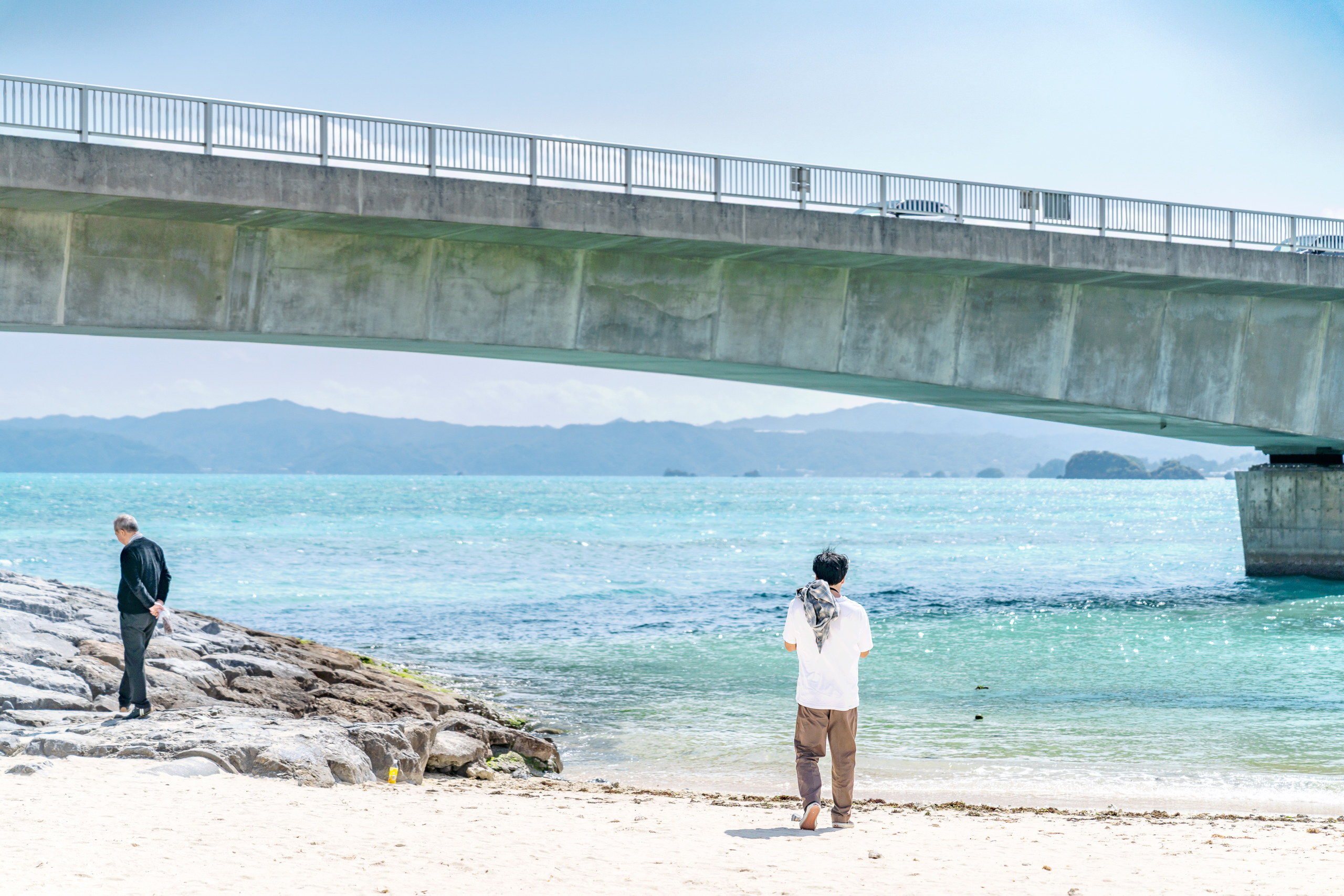 코우리 대교 위에서 바라본 모습입니다. 차량은 대교 남단과 북단 모두 주차가 가능하며, 걸어서 다리를 건너려면 족히 30분은 걸어야합니다. 그러므로 남단에서 구경을 하고, 차량으로 북쪽에 다시 가서 에메랄드 바다를 감상하기길 바랍니다.