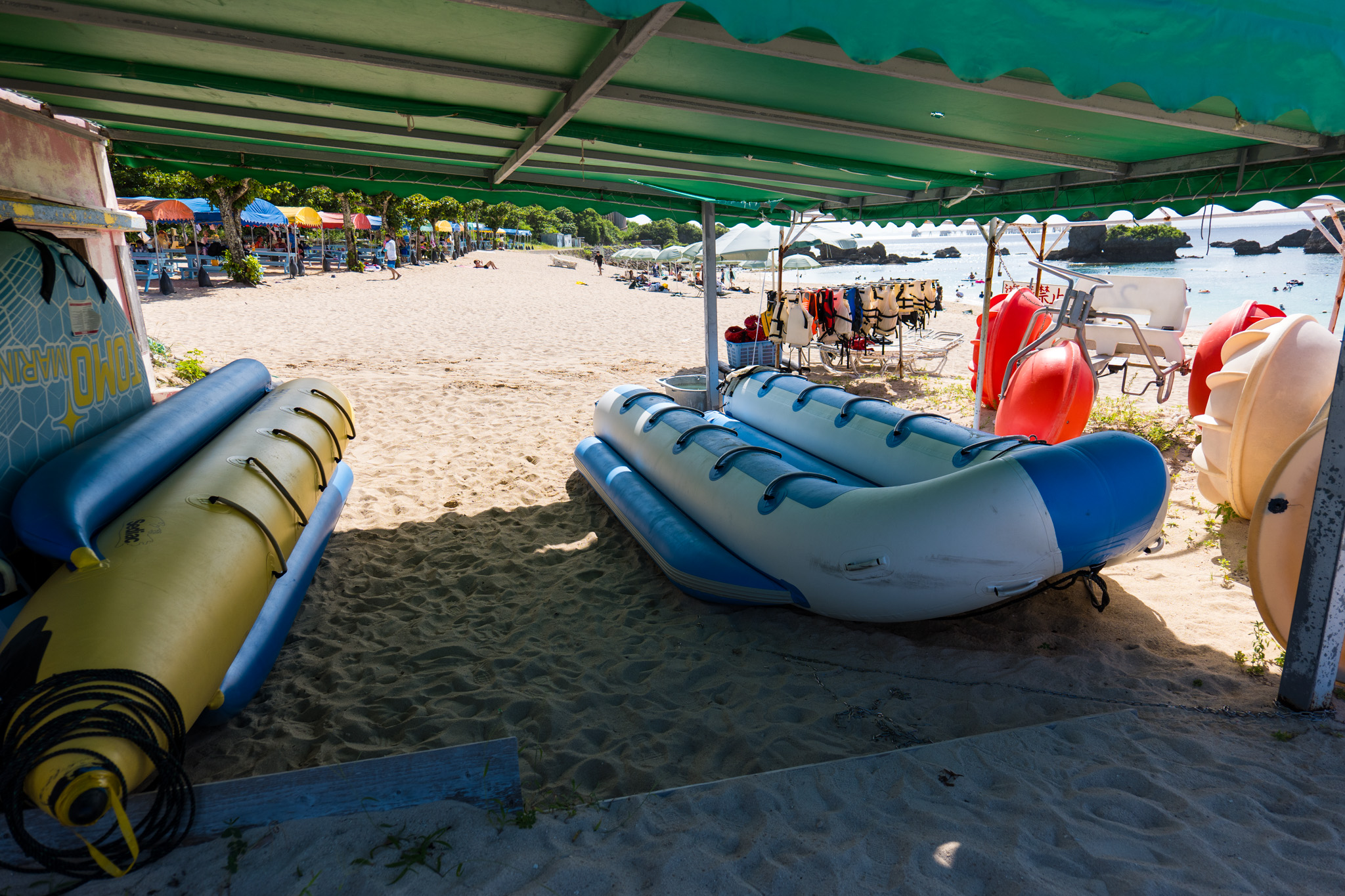 오도마리 비치는 관리가 잘 되어 있으며, 다양한 편의시설이 잘 갖춰져 있어 이용이 편리합니다. 음식값이 비교적 저렴한 편이며, 반입도 가능합니다. 안전요원이 상주하고 해파리 방지 그물도 설치되어 있어 안심할 수 있습니다.