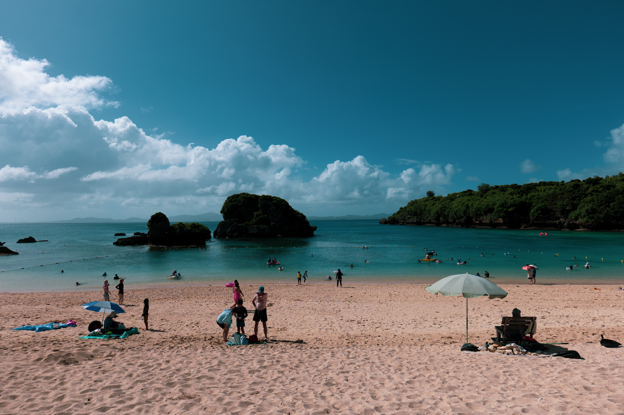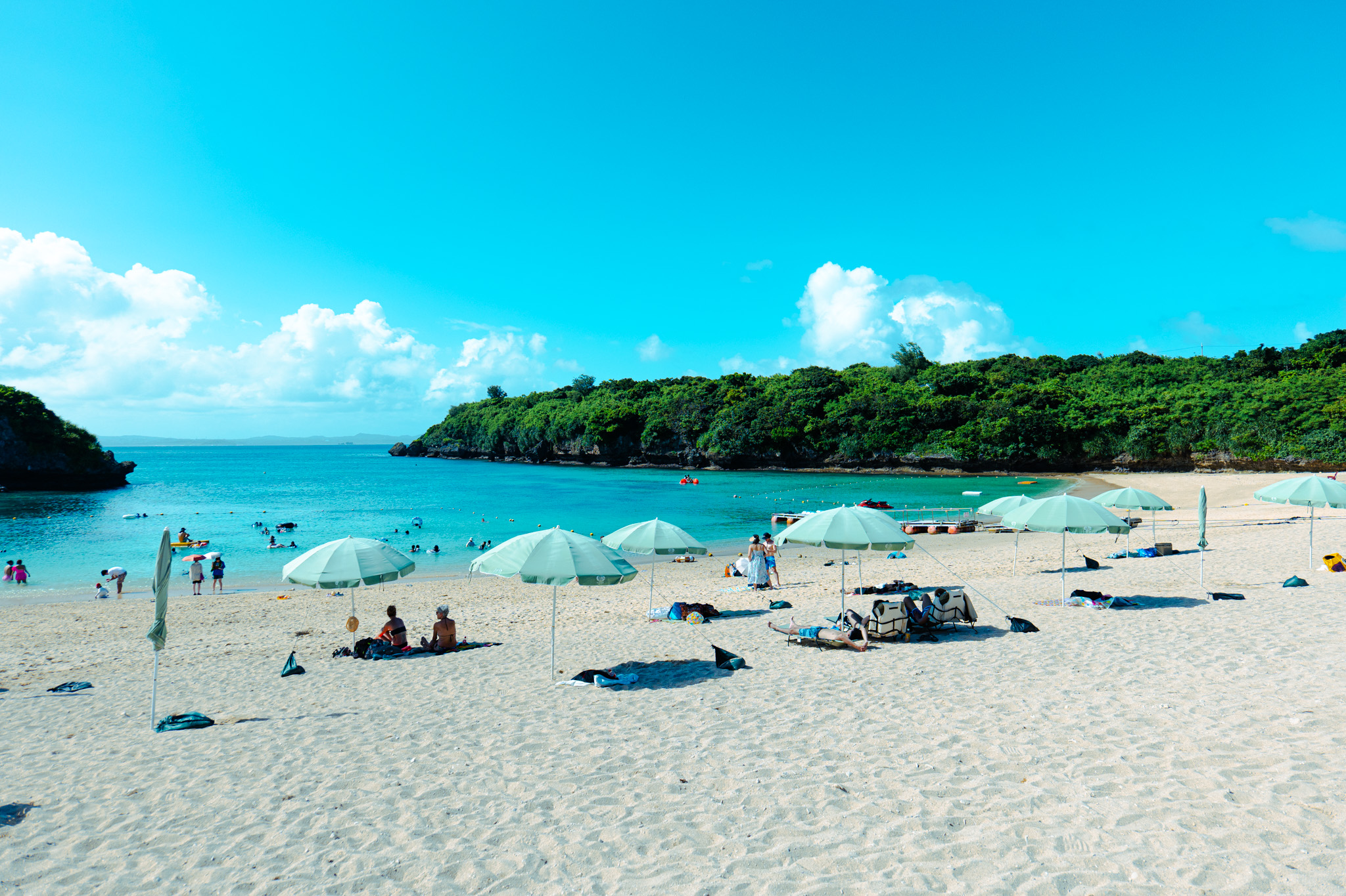이케이 비치는 오키나와에서도 손꼽히는 투명한 바다와 곱디고운 백사장이 매력적입니다. 게다가 조용하기까지 합니다. 날씨와 시간대에 따라 바다색이 청록에서 에메랄드로, 다시 짙은 블루로 변합니다. 파도가 잔잔해 수영과 스노클링을 즐기기에 적합합니다.