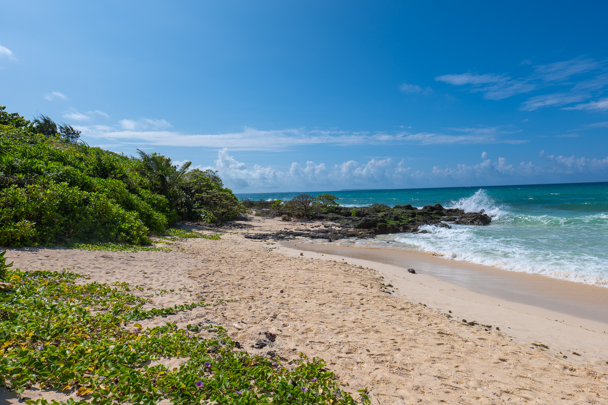 토구치노하마는 이라부섬 남쪽에 있는 활 모양의 천연 비치예요. 눈부실 만큼 새하얗고 고운 모래가 펼쳐져 있어 아이와 함께 해수욕하기 좋은 곳이에요. 주차장과 샤워실, 화장실 같은 기본 시설도 잘 갖춰져 있어서 누구나 부담 없이 미야코 블루 바다를 즐길 수 있어요. 비치 정면에는 미야코지마와 쿠리지마가 내다보이는 풍경은 정말 그림 같아요. 살랑살랑 바닷바람 맞으며 걷기만 해도 힐링되는 그런 비치랍니다.