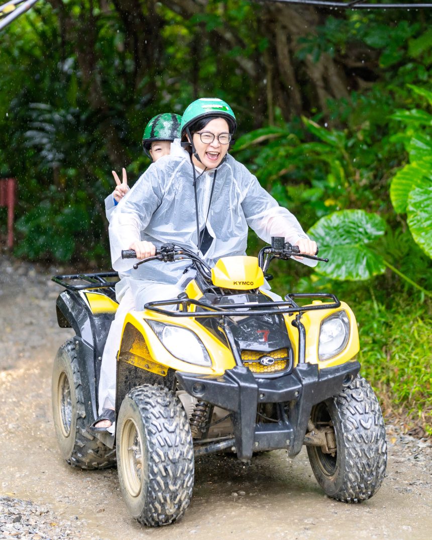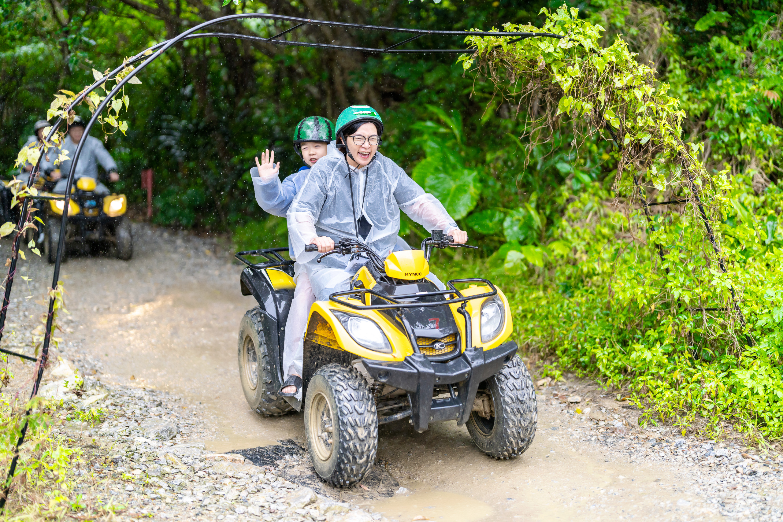 4륜 오토바이, 버기카를 이용하여 밀림을 드라이브 할 수 있습니다. 12세 이상이면 누구나 운전면허증 없이 즐길 수 있습니다. 5세 이상 11세 미만 어린이라면 부모님 뒤에 함께 즐길 수 있어요. 운전법 또한 어렵지 않고 버기카 체험 시작전에 강사분께서 알려주시기 때문에 쉽게 빠르게 배우고 바로 밀림 드라이브를 즐길 수 있습니다.