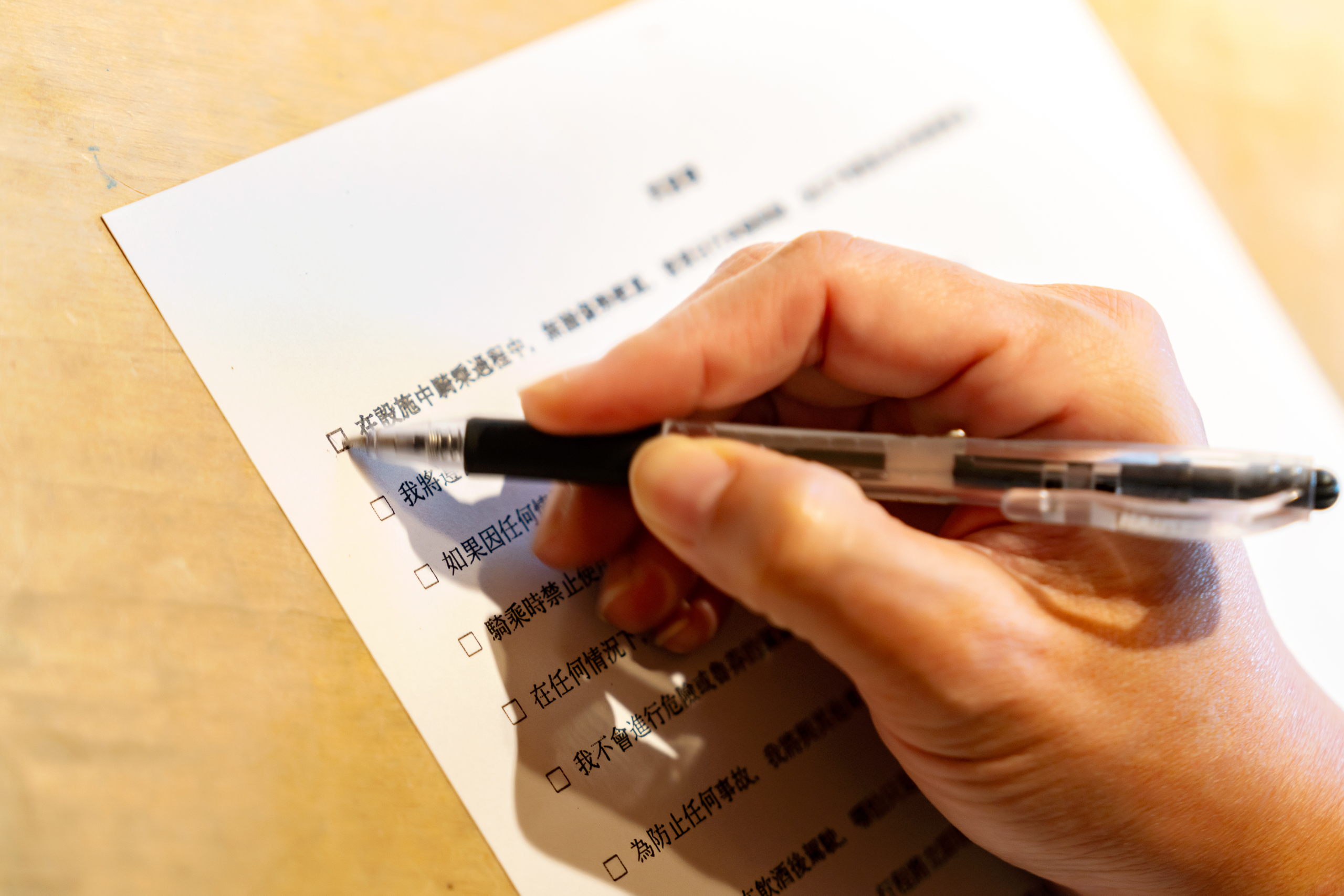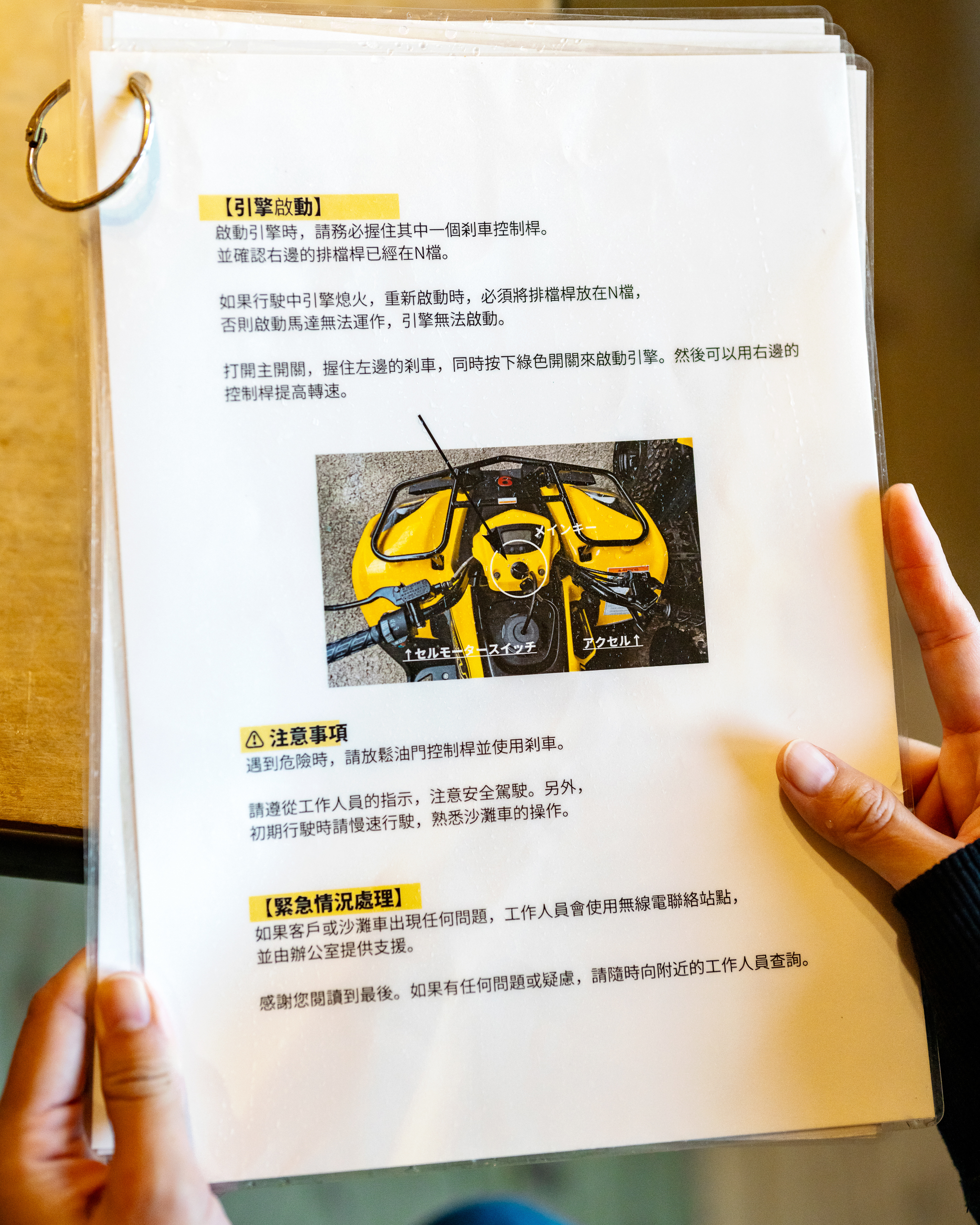 예약을 하고 얀바루 야영장에 도착해서 예약자분 성함을 확인한 다음 간단한 서약서를 작성해야합니다. 함께한 일행이 대만 사람들이기 때문에 대만어로 서약서이지만 한국어 서약서도 준비되어 있습니다. 대략 서약서 내용은 음주 운전을 하지 않겠다. 안전통제를 잘 따르겠다. 등 대부분 여러분 안전에 관련한 내용들로 가득합니다. 무엇보다도 도파민 충전이 중요하다지만 여러분의 안전이 가장 중요하니까요.