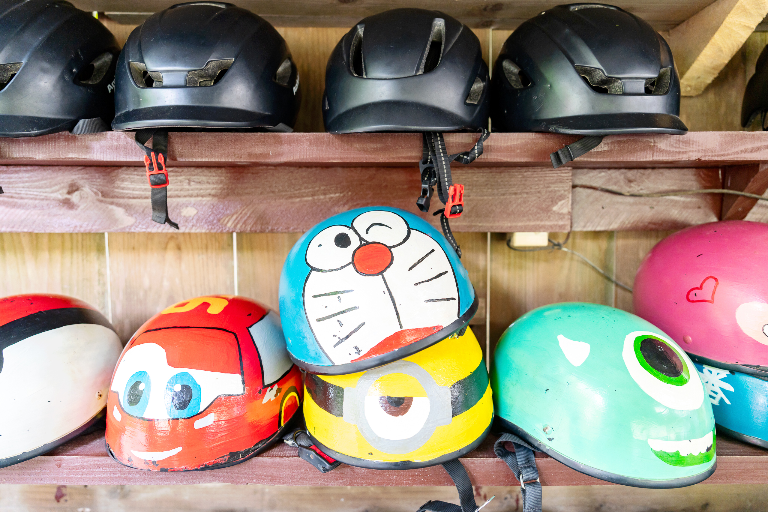 캐릭터나 과일이 그려진 헬멧으로 한껏 멋을 부린 후, 필요한 경우 대기실에 준비된 슬리퍼를 갈아신으면 좋습니다. 버기카가 정말 파워풀하게 달리기 때문에 흙이 엄청 튀거든요. 비치된 선글라스를 사용하셔도 좋고, 아예 탈의실에서 옷을 갈아입어도 좋습니다! 또한 락커도 있어서 귀중품을 보관할 수도 있습니다. 여러분이 4륜 오토바이를 즐기기에 필요한 것들은 전부 준비되어 있어요.
